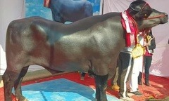 Với mã ngoài ấn tượng, con trâu khổng lồ nghiễm nhiên trở thành ngôi sao sáng nhất tại hội chợ gia súc.